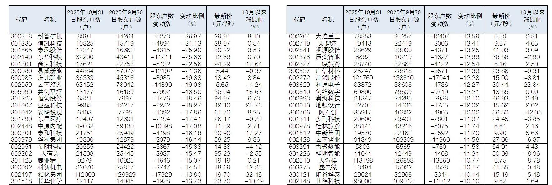 根据Wind数据统计正规配资官网,截至11月5日,已有602家公司披露截至10月31日的最新股东户数,其中,44股股东户数相较三季度末环比减少超过10%。从二级市场来看,雅化集团、显盈科技、利通电子、泰和科技等股股价10月以来涨幅居前。